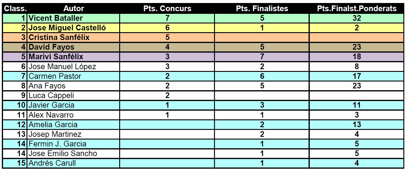 Vicent Bataller es proclama guanyador de la 4ª LLiga Social d´AFCA amb l´obtenció al llarg de les convocatòries d´un total de 7 punts de concurs.