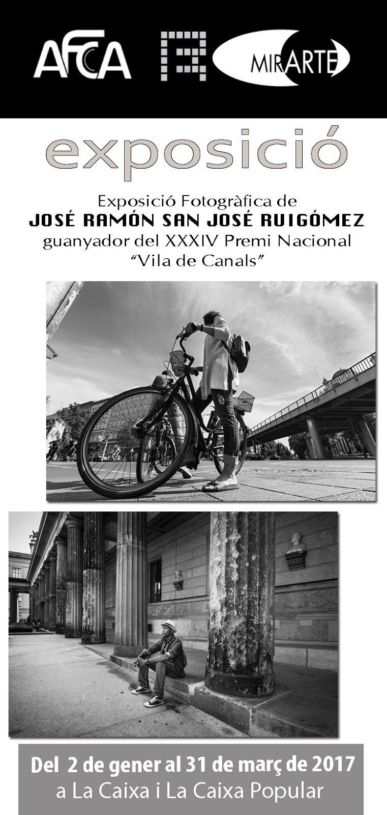 Del 2 de gener fins al 31 de març de 2017 a la Caixa Popular i a La Caixa exposarà el fotógraf JOSÉ RAMÓN SAN JOSE RUIGOMEZ, guanyador del XXXIV del Premi Nacional de Fotografia “Vila de Canals”, la seua col.lecció “9 Días en Berlín”.