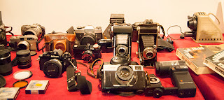 També hi havia un espai per al record on s’exposaren càmeres de tot tipus que formen ja part de la història de la fotografia, llibres, material de revelat de negatius, l’ampliadora que ferem servir per a positivar al nostre laboratori, etz.
