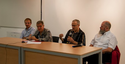 A les 19 hores començava la conferència amb els següents ponents: Luis Botella, President de l’Agrupació Fotogràfica d’Ontinyent (AFO), Ximo Bueno, President de Fotoaficionats d’Algemesí (FA), Pepe Sanchis, primer President d’AFCA i fotògraf profesional i Jose Emilio Sancho, actual President d’AFCA.