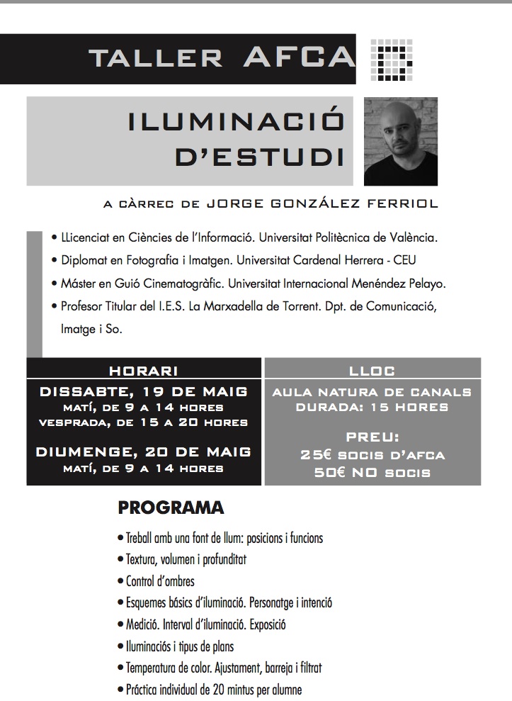 tina on 22 de maig de 2012 at 22:56 vull comentar que el curs de foto d'estudi va estar molt interessant tant pel professor( jorge) com les persones que vam participar com a alumnes,,un cap de setmana complet,,,gràcies a tots/es per fer-ho possible,,cristina Entra per respondre